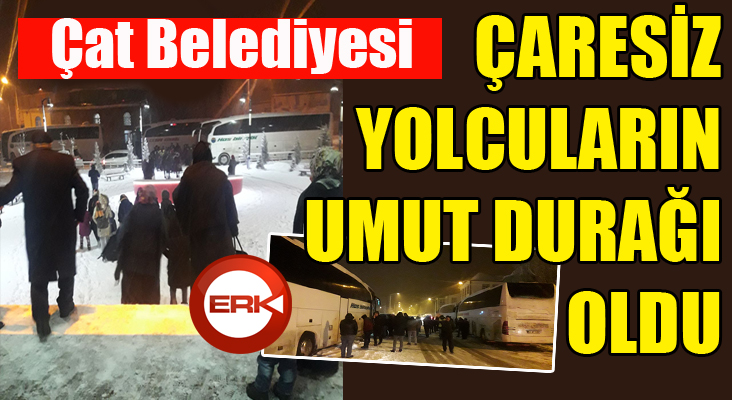 Başkanın talimatıyla yaklaşık 380 kişi için seferber olan ekipler yolcuları belediye misafirhanesi ve Yatılı Bölge Okulu’nda ağırladı. Yolun akşam saatlerinden itibaren kapandığını ve Erzurum’dan Bingöl yönüne giden onlarca aracın Çat ilçesinde bekletildiğini belirten Çat Belediye Başkanı Arif Hikmet Kılıç, “Yolda mahsur kalan yolculara sahip çıkmak bizim görevimiz. Onların araçlarında oturup yolun açılmasını beklemelerine gönlümüz razı olamaz. Yaklaşık 380 yolcuyu belediyemizde ağırladık. Yemek ikramında bulunup, gece konaklamaları için Çat Yatılı Bölge Okulu’nu hazırlattık”dedi.