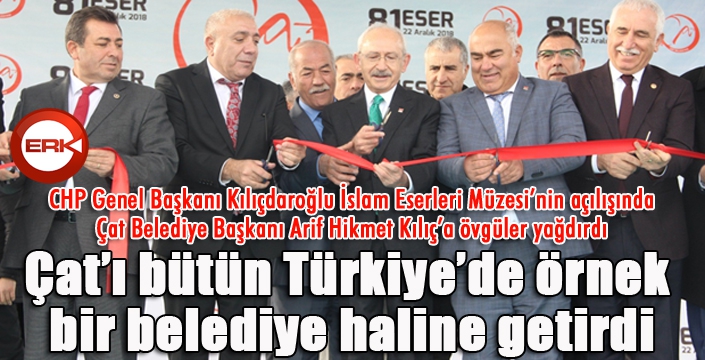 Çat Belediye Başkanı Arif Hikmet Kılıç ise "Bugün gerçekten çok mutlu bir gün. 5 yılın yorgunluğu genel başkanımız Kılıçdaroğlu’nun verdiği şereften dolayı omuzlarımızdan kalktı. O mutluluğu, huzuru, rahatlığını hissediyorum. 81 eser yaptık. Her eser kendi ekseninde takdire ve övgüye eşit mesafededir. İçlerinde bir eser var ki bu her şeyin önüne geçti. Bence burada 81 eseri ne yaptığımı anlatmayacağım. Türkiye’de olmayan İslam Eserleri Müzesini bir nevi size anlatacağım" dedi.