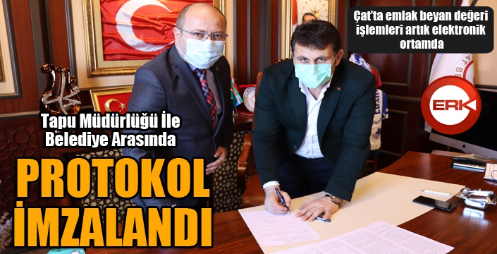 Protokol hakkında açıklama yapan Çat Belediye Başkanı Melik Yaşar, ‘’İmzalanan protokole göre iki kurum arasındaki emlak beyan değeri işlemleri artık elektronik ortamda gerçekleşecek. Tapu işlemleri sırasında istenilen emlak beyan değeri almak için vatandaşlarımız belediyemize gelmeden elektronik ortamda işlemlerini yapabilecekler. Çevre ve Şehircilik Bakanlığımız Tapu ve Kadastro Genel Müdürlüğü tarafından yeni geçilen uygulama ile tapu harcına esas olmak üzere talep emlak beyan değerlerinin elektronik güvenli ortamda alınabilmesinin önü açıldı. Bu konuda vatandaşlarımızın iş yükünü azaltmak, zaman tasarrufu sağlamak için Çat Tapu Müdürlüğümüz ile protokol imzaladık. İlçemize hayırlı olsun’’dedi.