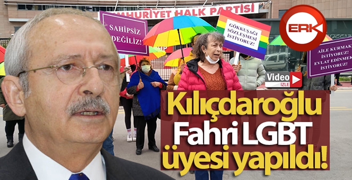 ERKHABER / ERZURUM - Cumhuriyet Halk Partisi (CHP) Genel Başkanı Kemal Kılıçdaroğlu, Partisinin Genel Merkezi önünde basın açıklamasında bulunan 13 kişilik LGBT üyesi grup tarafından LGBT üyesi yapıldı. LGBT Ankara Sözcüsü Beray Göksu, bir televizyon programında LGBT haklarını savunduğu için kendisine teşekkür ederek, LGBT'ye fahri üye yapıldığını duyurdu. Sözcü Beray Göksu ayrıca LGBT'lilerin de diğer her insan gibi vergi ödediklerini belirterek kendilerinin öteki olmadığını, toplumda yerleri olduğuna vurgu yaptı. Sözcü Göksu, ayrıca İstanbul Sözleşmesi'nin de önemine değindi.