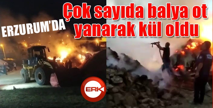 ERKHABER / ERZURUM - Erzurum’um Horasan ilçesinde balya otların alev alması sonucu çok sayıda balya ot yanarak kül oldu.
