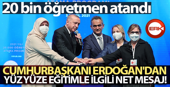 ERKHABER / ERZURUM - Cumhurbaşkanı Recep Tayyip Erdoğan, Haliç Kongre Merkezi'nde 20 bin öğretmenin atama törenine katıldı. Törende konuşan Cumhurbaşkanı Erdoğan, yeni yapılacak 20 bin öğreten atamasıyla Türkiye'deki tüm okullarda görev yapan öğretmen sayısının 1 milyon 137 bini bulacağını söyledi.