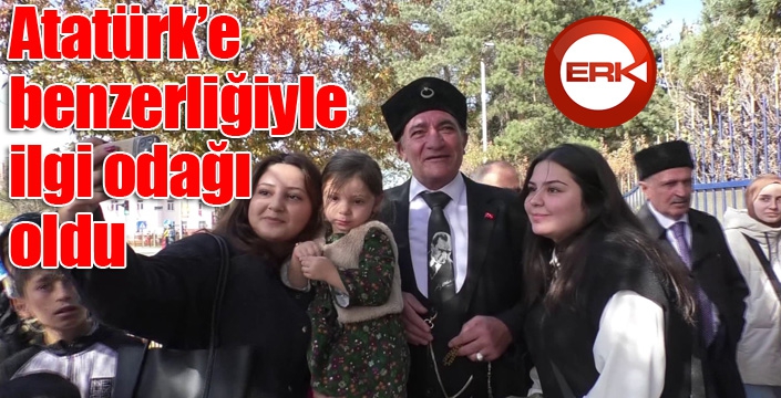 ERKHABER / ERZURUM - Erzurum’da 29 Ekim Cumhuriyet Bayramı kutlamalarında Yakup Evliyaoğlu adlı vatandaş, Atatürk’e benzerliği ile ilgi odağı oldu.