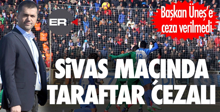 ERKHABER / ERZURUM - Çaykur Rizespor ile oynanan Süper Lig maçı sonrasında Profesyonel Futbol Disiplin Kurulu'na (PFDK) sevk edilen Büyükşehir Belediye Erzurumspor Kulüp Başkanı Hüseyin Üneş ve taraftarlarla ilgili karar bugün açıklandı. PFDK, Başkan üneş'e ceza vermezken, çok sayıda taraftara bir maç ceza verildi. Rizespor maçında tribünde olan taraftarların büyük bir çoğunluğu Sivasspor maçında tribünlerde olamayacak... Mavi Beyazlı kulübe de taraftarların küfürlü tezahüratı nedeniyle 50 Bin TL, merdiven boşluklarının boş bırakılmaması yüzünden de 25 bin TL para cezası kesildi.
