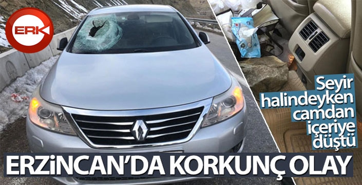 ERKHABER / ERZURUM - Erzincan- Kemah kara yolu Cebesoy mevkiinde meydana gelen olayda, yol kenarındaki yamaçtan koparak yuvarlanan kaya parçası, Muharrem Kurnaz'ın kullandığı 34 VP 2293 plakalı otomobilin ön camını kırarak içeri girdi. Ön koltukta otururken başına taş isabet eden Kemah Gülbahçe köyü Muhtarı Doğu Karabuğa (37) yaralandı.