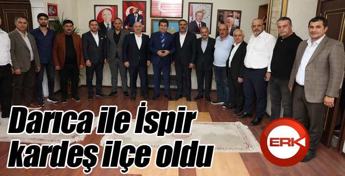 Darıca ile Erzurum İspir ilçesi kardeş şehir oldu. İki şehir arasındaki birlik, beraberlik ve dayanışmayı pekiştirmek, gelecekteki iş birliklerine zemin hazırlamak adına Darıca Belediyesi ile İspir Belediyesi arasında “Kardeş Şehir Protokolü” imzalandı. İspir’de gerçekleşen protokole Darıca Belediye Başkanı Muzaffer Bıyık ile İspir Belediye Başkanı Ahmet Coşkun birlikte imza attı. İmza törenine AK Parti Darıca İlçe Başkanı Köksal Şakar ve belediye meclis üyeleri de katıldı. İspir Belediye Başkanı Ahmet Coşkun, protokolün hayırlı olmasını dileyerek “Darıca’da çok sayıda hemşehrimiz yaşıyor. Zaten güçlü olan bağlarımız kardeş şehir protokolü ile daha da güçlendi. Sizleri İspir’de ağırlamaktan dolayı büyük bir mutluluk yaşıyoruz. İşbirliğimiz ve kardeşliğimiz her zaman sürecek” diye konuştu.