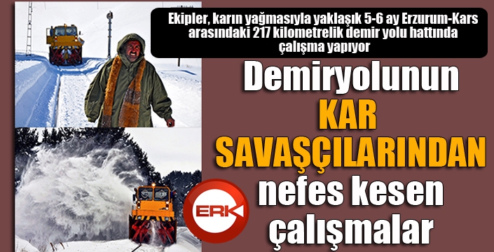 TCDD’nin kar ve buz ile mücadele etmek için oluşturduğu özel ekip, Doğu Anadolu Bölgesi'nde etkili olan dondurucu soğuk ve karlı hava nedeniyle demir yolu ulaşımının aksamaması ve trenlerin istasyonlara sorunsuz ulaşması için yoğun çaba gösteriyor. Ekipler, karın yağmasıyla yaklaşık 5-6 ay Erzurum-Kars arasındaki 217 kilometrelik demir yolu hattında çalışma yaparak, yolcu ve yük trenlerinin zamanında ve güvenli bir şekilde ulaşımını sağlıyor.