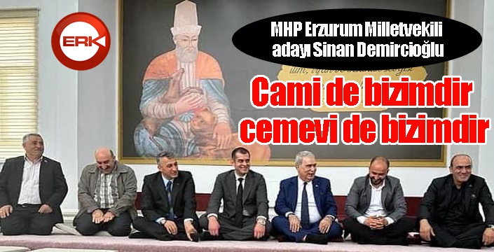 MHP Milletvekili adayı Ömer Haluk Pirimoğlu ile birlikte Hz. İmam Hüseyin Erzurum Cemevini ziyaret eden Sinan Demircioğlu’na, İl Başkan Yardımcıları Kürşat Karahan, Haktan Genç, Haktan Bayrakçı ve Palandöken İlçe Başkanı Abdullah Karaoğlu da eşlik etti. Cemevi Başkanı Ertürk Karaman ve canlarla bir araya gelen Sinan Demircioğlu, oldukça sıcak ve samimi bir havada gerçekleşen buluşmada, birbirinden değerli mesajlar verdi.