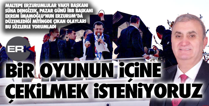 ERKHABER / ERZURUM - Maltepe Erzurumlular Vakfı Başkanı Süha Dengizek, 7 Mayıs Pazar günü İstanbul Büyükşehir Belediye Başkanı Ekrem İmamoğlu'nun Erzurum'da düzenlediği mitingde çıkan olaylarla ilgili açıklamalarda bulundu. "Bizler her zaman her yerde Erzurumlu olmaktan onur duyarız gurur duyarız" diyen Dengizek, "Erzurumlular feraset sahibidir. Bilerek bir oyunun içine çekilmeye çalışılıyor" iddiasında bulundu.