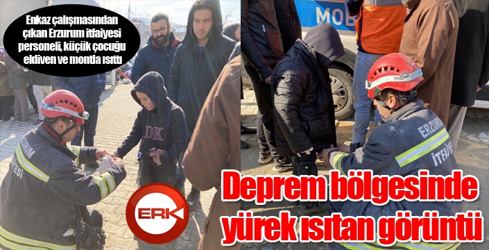 ERKHABER / ERZURUM - Kahramanmaraş merkezli depremlerin vurduğu 10 ilde kurtarma çalışmaları devam ederken, bölgeden yürek ısıtan görüntüler de geliyor. Hatay’da enkaz çalışmasından çıkan Erzurum itfaiyesi arama kurtarma ekibinde görevli personel, üşüyen bir çocuğu fark ederek, çocuğa bir çift eldiven ve mont giydirdi.