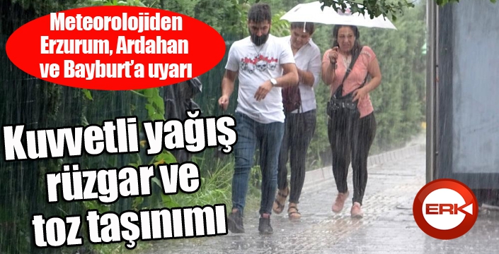 Meteoroloji 12. Bölge Müdürlüğü ekiplerince yapılan son değerlendirmelere göre, bölge genelinde hava parçalı ve çok bulutlu, sağanak ve gök gürültülü sağanak yağışlı geçecek. Yağışların Erzincan'ın doğusu ile Erzurum, Ardahan ve Bayburt çevrelerinde yer yer kuvvetli olacağı öngörülüyor.