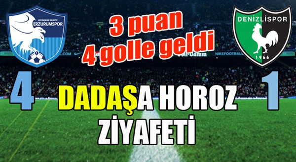 ERKHABER / ERZURUM - TFF 1. Lig 9. hafta mücadelesinde Kazım karabekir Stadyumu'nda karşı karşıya gelen BB Erzurumspor Denizlispor mücadelesi mavi-beyazlı ekibin 4-1'lik üstünlüğü ile sona erdi. Karşılaşmanın 16. dakikasında Ziya Akkur'un penaltı golüyle 1-0 mağlup duruma düşen dadaşlar, 22. dakikada Hamza Younes'le cevap vererek karşılaşmayı 1-1'e getirdi. bu dakikadan sonra oyunun kontrolünü tamamen eline alan mavi-beyazlılar Lokman Gör (2) ve Erhan Çelenk'in golleriyle rakibini 4-1 mağlup etmeyi başardı.