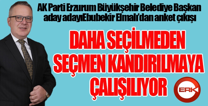 AK PARTİ Genel Başkan Yardımcısı Mustafa Şen'in " Biz, henüz AK PARTİ olarak Türkiye’nin hiç bir yerinde her hangi bir belediye başkanlığı için isim vererek anket yapmadık. AK PARTİ adını kullanarak açık operasyon ve manipülasyon yapan kişilere ve çöp anketlere itibar edilmemesi dileğiyle kamuoyunun bilgisine sunulur." açıklamısını hatırlatan Elmalı, "Her seçim dönemi Bir anket kulisi oluşuyor. Ankara ve İstanbul’da yıllardır mesleğimi icra ediyorum. Anket işlerinin nasıl döndüğünü iyi biliriz. Anket üzerinden sanki Genel merkezin adayıymış gibi bir izlenimle daha seçilmeden seçmeni manipüle etme çabası beyhude. Kendinizi kandırısınız." dedi.