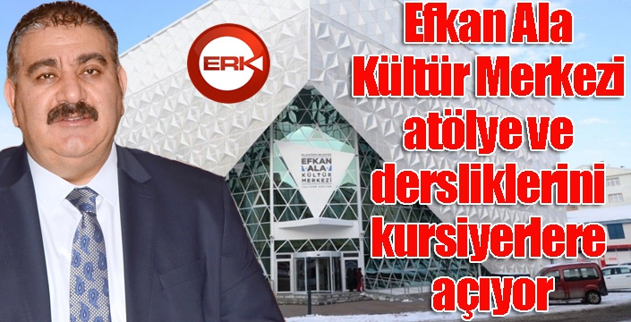 Efkan Ala Kültür Merkezi, atölyelerini kursiyerlere açıyor Heykel Yapım, Satranç, Adli Takip, İşaret Dili, Emlak Danışmanlığı, İlk Yardım, İş Sağlığı ve Güvenliği, Hijyen, Ney, Karakalem, İngilizce, Diksiyon, Hüsn-ü Hat, Tasavvuf Musikisi, Modern El Sanatları, Tiyatro, Keman, Gitar ve bağlama atölyeleri için kayıtlar başladı.