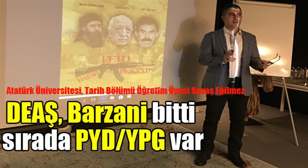 ERKHABER / ERZURUM - Atatürk Üniversitesi, Tarih Bölümü Öğretim Üyesi Savaş Eğilmez, Orta Doğu’da yaklaşık 10 yıldır sergilenen DEAŞ tiyatrosunun neredeyse bitmek üzere olduğunu belirterek, “DEAŞ, Barzani bitti ve sırada PYD/YPG var” dedi.