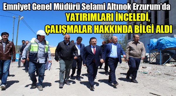 Emniyet Genel Müdürü Selami Altınok, bu sabah saatlerinde memleketi Erzurum’a geldi. Emniyet Müdürlüğü, Çevik Kuvvet Şube Müdürlüğü ve Polis Okuluna giderek ziyaret ve incelemelerde bulunan Selami Altınok daha sonra Vali Seyfettin Azizoğlu ve İl Emniyet Müdürü Mehmet Aslan ile birlikte yapımı devam eden yeni Emniyet Müdürlüğü binasına geçerek incelemelerde bulundu. Yeni hizmet binasının yapım aşamasıyla ilgili şantiye yetkililerinden bizzat bilgi alan Altınok, inşaat alanını gezdi.
