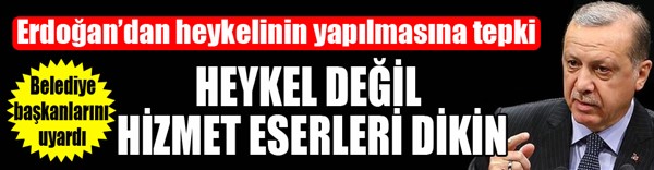 ERKHABER / ERZURUM - Cumhurbaşkanı Recep Tayyip Erdoğan, ATO Congresium'da düzenlenen Belediye Başkanları İstişare ve Değerlendirme Toplantısı'nda konuştu. Erdoğan heykelinin yapılmasına tepki göstererek, "Şahsımın heykelini ve benzerlerini yapmışlar. Tabii bunu duyunca ben çok çok üzüldüm. Bu bizim değerlerimize terstir. Ben ne heykelimin dikilmesini istiyorum, ne masklar yapılmasını istiyorum, ne bu tür görseller yapılmasını istiyorum. Bir defa bunları kaldırttık. Bundan sonra lütfen bu yanlışlara tevessül etmesinler. Heykel değil hizmete yönelik eserleri diksinler. Bunların bizim değerlerimizle çatışan şeyler olduğunu bir defa bilmemiz lazım. Asla bu yola, hiçbir arkadaşım böyle bir yanlış yaptılar. Bundan sonra kimse de bu yola tevessüle etmesin" ifadelerini kullandı.