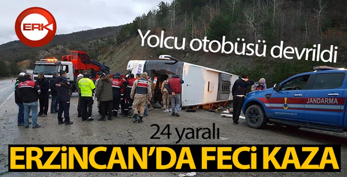 ERKHABER / ERZURUM - Kaza, bugün saat 06. 00 sıralarında Erzincan - Sivas kara yolu Akarsu mevkiinde meydana geldi. Alınan bilgiye göre, Ünal G'nin kullandığı 35 KLB 25 plakalı Bizim Iğdır firmasına ait yolcu otobüsü, Erzincan Sivas kara yolunun Refahiye ilçesindeki Akarsu köyü mevkiinde kontrolden çıktı. Yolun kenarına devrilen otobüsteki 1'i ağır toplam 24 kişi yaralandı.
