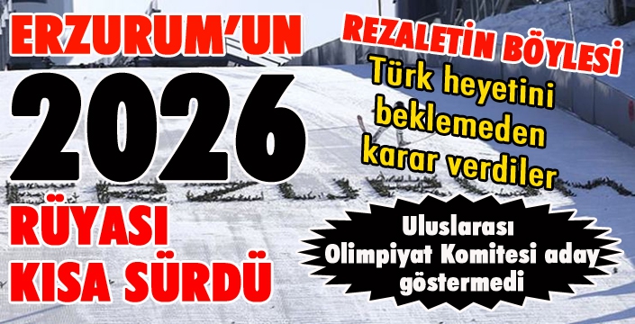 ERKHABER / ERZURUM - Erzurum’un 2026 Dünya Kış Olimpiyatları rüyası kısa sürdü. Calgary (Kanada), Milan / Cortina d'Ampezzo ( İtalya) ve Stockholm (İsveç) ile birlikte aday adayı olan Erzurum, 2026 Olimpiyat Kış Oyunları Çalışma Grubu'nun raporu doğrultusunda aday olarak gösterilmedi.