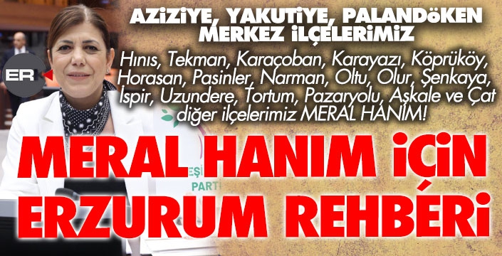 Hınıs, Tekman, Karaçoban, Karayazı, Köprüköy, Horasan, Pasinler, Narman, Oltu, Olur, Şenkaya, İspir, Uzundere, Tortum, Pazaryolu, Aşkale ve Çat diğer ilçelerimizdir Meral Hanım!
