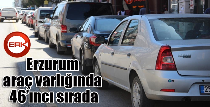 Erzurum trafiğe kayıtlı motorlu kara taşıtı sayısı düzeyinde 46’ıncı oldu. Araç varlığının en yüksek olduğu iller; İstanbul, Ankara, İzmir, Antalya, Bursa, Konya, Adana, Mersin, Manisa, Gaziantep, Muğla, Hatay, Balıkesir, Aydın, Denizli, Kocaeli, Kayseri, Samsun, Sakarya, Eskişehir, Tekirdağ, Şanlıurfa, Kahramanmaraş, Çanakkale, Afyonkarahisar, Kütahya, Trabzon, Tokat, Malatya, Isparta, Çorum, Osmaniye, Sivas, Edirne, Zonguldak, Ordu, Uşak, Burdur, Kırklareli, Kastamonu, Elazığ, Aksaray, Nevşehir, Diyarbakır, Amasya, Erzurum, Bolu, Düzce, Niğde, Adıyaman olarak sıralandı.