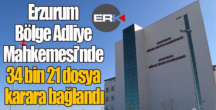2024 yılında Erzurum Bölge Adliye Mahkemesine gelen 31 bin 119 dosya ve bir önceki yıldan devreden 23 bin 103 dosya olmak üzere toplamda 54 bin 222 dosyadan 34 bin 21 dosya karara bağlandı. Yüzde 109 oranında temizlenme oranı ile, Erzurum Bölge Adliye Mahkemesi gelen davalardan fazla sayıda davayı bitirmek suretiyle muhtemel dava yığılmalarını azaltma eğilimini sürdürüyor. Erzurum Bölge Adliye Mahkemesi 2024 yılından bu yana; Ağrı, Ardahan, Bayburt, Erzincan, Erzurum, Iğdır, Kars ve Tunceli illeri merkez ve mülhakatlarındaki toplam 48 adliye tarafından verilen kararlarla ilgili istinaf mahkemesi olarak hizmet veriyor. 31 Aralık 2024 tarihi itibariyle Bölge Adliye Mahkemesi’nde 8 Ceza Dairesi, 6 Hukuk Dairesi faaliyet gösteriyor.