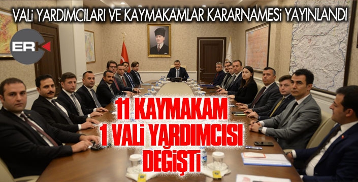 Kayseri Pınarbaşı Kaymakamı İbrahim Gökmen Oltu’ya, Çankırı Yapraklı Kaymakamı Emre Oğuztürk Aşkale, Artvin Ardanuç Kaymakamı Ahmet Salih Poçanoğlu İspir, Gaziantep Yavuzeli Kaymakamı Hasan Raşit Taşkın Tekman, Manisa Ahmetli Kaymakamı Abdullah Kurt Şenkaya, Diyarbakır Çüngüş Kaymakamı Tuncay Kaldırım Yakutiye, Şırnak Güçlükonak Kaymakamı Aziz Oğuz Alemdaroğlu Narman, Sinop Türkeli Kaymakamı Mesut Ozan Yılmaz Horasan, Malatya Doğanşehir Kaymakamı Mehmet Kılıç Pazaryolu, Amasya Taşova Kaymakamı Ahmet Gökçecik Köprüköy, Erzincan Vali Yardımcısı Yunus Emre Temel Pasinler ve Adıyaman Vali Yardımcısı Muhammed Tugay Aziziye ilçelerine Kaymakam olarak atandılar.