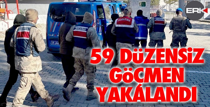 ERKHABER / ERZURUM - İl Jandarma Komutanlığınca son bir ay içerisinde göçmen kaçakçılığı ve düzensiz göçle mücadeleye yönelik icra edilen faaliyetlerde yurda kaçak yollarla girdiği tespit edilen 44 Afganistan, 3 Suriye, 1 İran, 5 Bangladeş, 3 Pakistan, 1 Türkmenistan, 1 Gürcistan ve 1 Filistin uyruklu olmak üzere, yakalanan toplam 59 düzensiz göçmen Aşkale Geri Gönderme Merkezine teslim edildi.