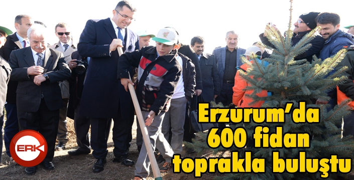 ERKHABER / ERZURUM - Milli Eğitim Bakanlığı ile Tarım ve Orman Bakanlığı tarafından düzenlenen ‘Fidanlar, Fidanlarla Büyüyor’ projesi kapsamında Erzurum’da 600 fidan toprakla buluştu.