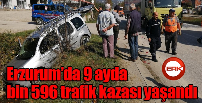 Erzurum’da bu yılın 9 ayında 16 kişi trafik kazalarında yaşamını yitirdi. İlde Ocak - Eylül ayları toplamında meydana gelen ölüm ve yaralanmalı trafik kazası sayısı Doğu Anadolu Bölgesi toplamında yüzde 12.15, ülke toplamında ise yüzde 0,64’lük oran oluşturdu.