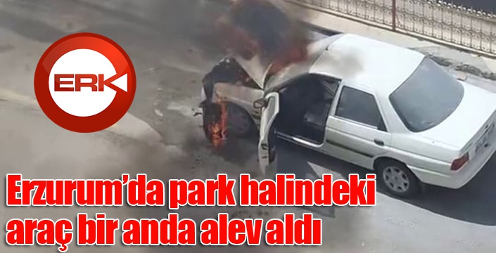 ERKHABER / ERZURUM - Erzurum’da park halindeki araç bir anda alev aldı, çevre halkı korku dolu anlar yaşadı.