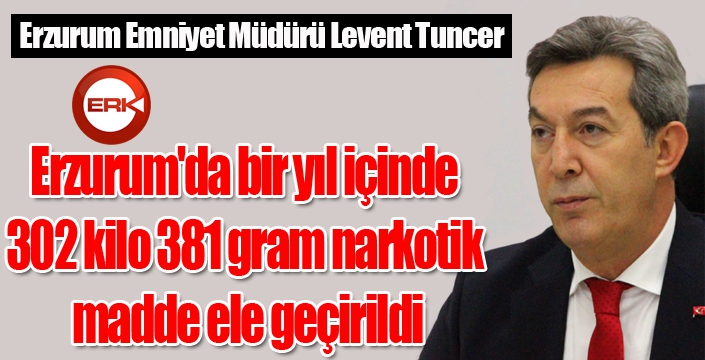 Erzurum genelinde 2022 yılı içerisinde narkotiğe yönelik toplam 381 operasyonel faaliyet olduğunu ifade eden Tuncer, "697 şüpheli şahsa işlem yapılmış, 163 şahıs tutuklanmıştır. Yapılan yakalamalarda 121 kilo 554,44 gram metamfetamin, 122 kilo 926,71 gram eroin, 11 kilo 059,84 gram afyon sakızı, 2 kilo 514,98 gram bonzai, 22 bin 769 adet uyuşturucu hap, 44 kilo 325,46 gram esrar ele geçirildi" şeklinde konuştu.