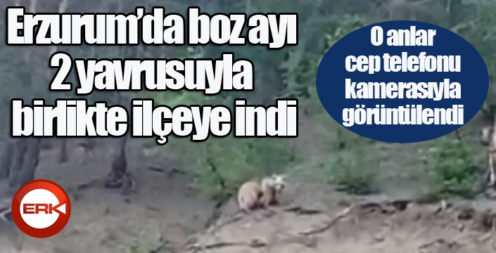 ERKHABER / ERZURUM - Erzurum’da boz ayı 2 yavrusuyla birlikte ilçeye indi. Tarlada çalışan çiftçi, ayı ve 2 yavrusunu görüntüledi.