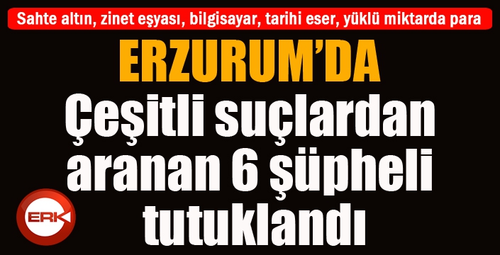 ERKHABER / ERZURUM - Erzurum Emniyet Müdürlüğü Asayiş Şubesi Hırsızlık Büro Amirliği ekipleri tarafından kentte kapkaç, sahte altın, hırsızlık, dolandırıcılık gibi olaylara karışanların yakalanmasına yönelik operasyon düzenlendi. Operasyonda Şubat ve Mart aylarında çeşitli yerlerde olaylara karıştıkları belirlenen 10 şüpheli gözaltına alındı. Şüphelilere yönelik yapılan aramalarda çalıntı olduğu belirlenen tarihi eser, ziynet eşyası, yüklü miktarda para ve çok sayıda bilgisayar ele geçirildi.