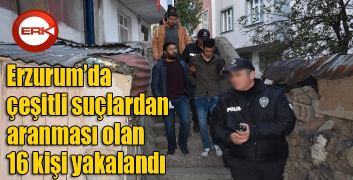 ERKHABER / ERZURUM - Erzurum’da çeşitli suçlardan aranması olan 16 şahıs, Emniyet Müdürlüğünün yaptığı çalışmalar neticesinden yakalandı.
