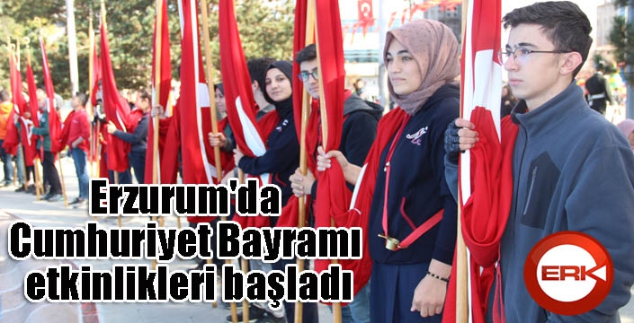Cumhuriyet Bayramının 96’ncı yıl dönümü kutlamaları, Erzurum Valisi Okay Memiş, 9’uncu Kolordu Komutanı Tümgeneral Veli Tarakçı ve Erzurum Büyükşehir Belediye Başkanı Mehmet Sekmen’in Atatürk Anıtı'na çelenk sunumuyla gerçekleşti. Saygı duruşunda bulunulması ve İstiklal Marşı'nın okunmasıyla başlayan kutlama töreninde, Atatürk Anıtı'nın bulunduğu Havuzbaşı Kent Meydanı'nda, 9’uncu Kolordu Komutanlığı Bölge Bandosu, Tören Bölüğü, İl Milli Eğitim Müdürlüğünce belirlenmiş okulların bayrak takımları, kamu - kurum ve kuruluş yöneticileri yer aldı.