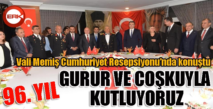 ”Cumhuriyetin 96’ncı yıldönümünü milletçe büyük bir gurur ve coşku içerisinde kutlamanın mutluluğunu yaşıyoruz” diyen Vali Memiş, “Cumhuriyet rejimi millet egemenliğine dayanan demokratik sosyal hukuk devletini temel dayanak kabul eden cumhurun kendi kendini yönetme idaresidir.” dedi.