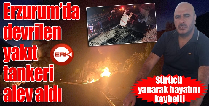 ERKHABER / ERZURUM - Erzurum’un Tortum ilçesinde kontrolden çıkarak devrilen yakıt tankeri alev aldı. Sürücü yanarak hayatını kaybetti.