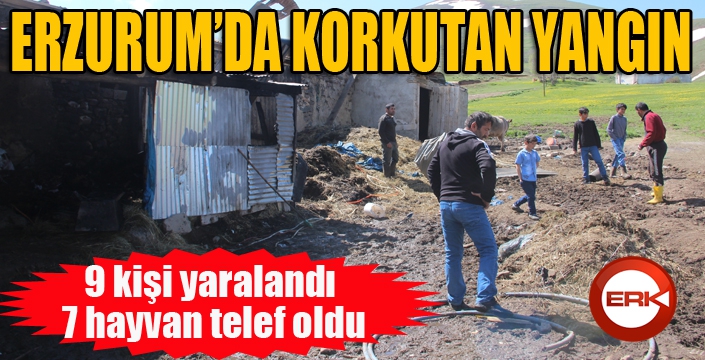 ERKHABER / ERZURUM - Erzurum’un Palandöken ilçesinde ahırda çıkan yangın sonrası 9 kişi yaralandı ahırdan çıkartılamayan 7 buzağıda telef oldu. 4 büyükbaş hayvan ise köylülerin büyük çabası sonrası güçlükle kurtarılırken hayvanların vücutlarının çeşitli bölgelerinde derin yanık izleri oluştu.