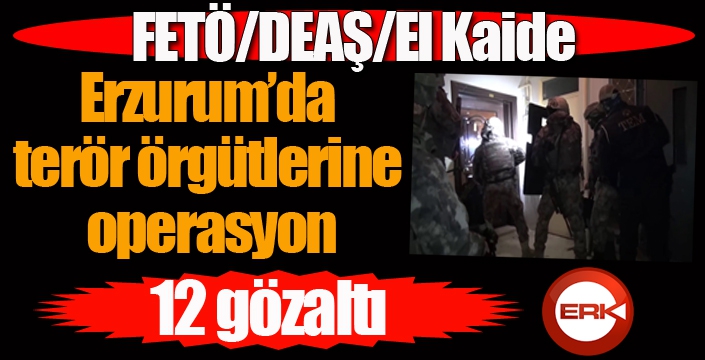 Erzurum Emniyet Müdürlüğü TEM ve İstihbarat Şube Müdürlüğü ekipleri tarafından Fetullahçı Terör Örgütüne yönelik yürütülen soruşturma çerçevesinde Deniz Harp Okulu ile Deniz Astsubay Meslek Yüksekokulu sınavlarında usulsüzlük yaptıkları ve ankesörlü/sabit/operasyonel hat olarak bilinen şifreli arama yöntemi ile sözde mahrem imamlarla iletişimleri tespit edilen; Fırat A., Fatih A., Muhammed Emin G., Enes Y. ve Yusuf Ö., DEAŞ Terör Örgütüne yönelik yürütülen soruşturma da, çatışma bölgelerinde bulunan şahıslara para transferi yaparak örgüte yardım ettiği tespit edilen; Barış K., İbrahim K., Semih G., Ahmet K., Sinan B. ve Mehmet Ali D., EL KAİDE Terör Örgütüne yönelik yürütülen soruşturma çerçevesinde, örgütte faaliyet gösteren şahıslara para transferi yaparak finansal destek sağladığı ve cezaevinde bulunan şahıslarla irtibatlı olduğu tespit edilen; Orhan P. olmak üzere hakkında gözaltı kararı verilen 12 şahsın tamamı adreslerinde yapılan eş zamanlı operasyonda yakalanarak gözaltına alındı.