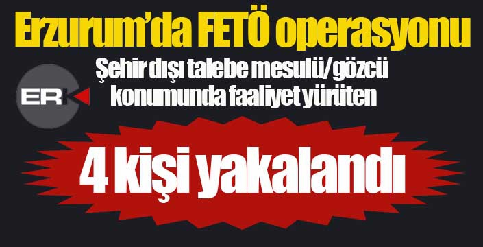 ERKHABER / ERZURUM - Erzurum’da düzenlenen FETÖ operasyonda şehir dışı talebe mesulü/gözcü konumunda faaliyet yürüten 4 kişi yakalandı.
