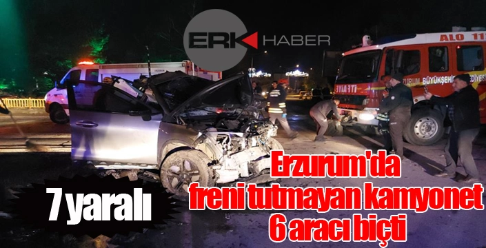 ERKHABER / ERZURUM - Erzurum'da şehir merkezinden geçen E80 karayolunda freni tutmayan kamyonet, ışıklarda bekleyen 6 aracı biçti. Kazada ilk belirlemelere göre 7 kişi yaralandı.