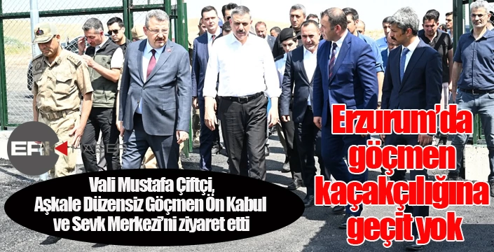 ERKHABER / ERZURUM - Vali Mustafa Çiftçi, Aşkale Düzensiz Göçmen Ön Kabul ve Sevk Merkezi’ni (GÖKSEM) ziyaret etti. Ziyaret kapsamında, merkezde yürütülen çalışmalar hakkında bilgi alan Vali Çiftçi, düzensiz göçle mücadelede merkezin üstlendiği önemli rolü yerinde inceledi.