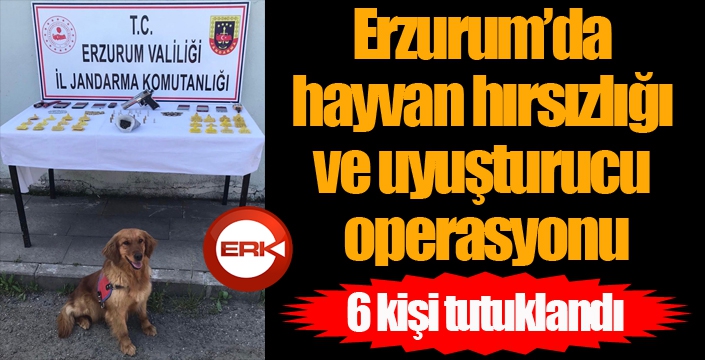 ERKHABER / ERZURUM - Erzurum’da iki ayrı olayda jandarma ekipleri tarafından büyükbaş hayvan hırsızlığı ve uyuşturucu ticareti yapan şahıslara yönelik düzenlenen operasyonda 6 zanlı tutuklandı.