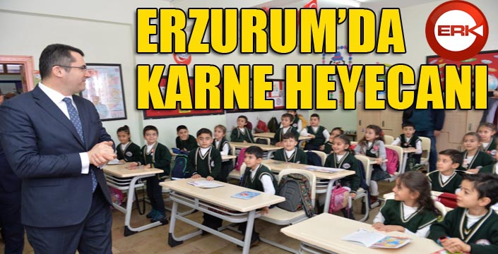 Öğrencilerin heyecanla beklediği yarıyıl tatili başladı. Erzurum genelindeki ilk ve ortaöğretimde öğrenim gören 154 bin 634 öğrenci karnelerini aldı. Karne heyecanının yaşandığı Şehit Murat Elik İlköğretim Okulunda eğitim-öğretim yılının ilk yarısının sona ermesi dolayısıyla tören düzenlendi. Törene, Vali Okay Memiş, İl Milli Eğitim Müdürü Salih Kaygusuz, öğretmenler, veliler ve öğrenciler katıldı.