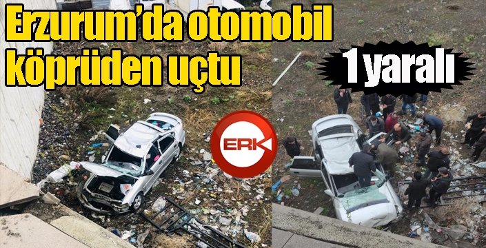ERKHABER / ERZURUM - Erzurum’da direksiyon hakimiyetini kaybeden otomobil köprüden aşağıya uçtu.