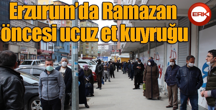 ERKHABER / ERZURUM - Erzurum'da vatandaşlar, Ramazan ayı öncesi Et ve Süt Kurumu Kombina Müdürlüğüne ait satış mağazasından ucuz et alabilmek için uzun kuyruklar oluşturdu. Sosyal mesafe kuralına uyarak sıra bekleyen vatandaşların oluşturduğu kuyruk ise 400 metreyi buldu.