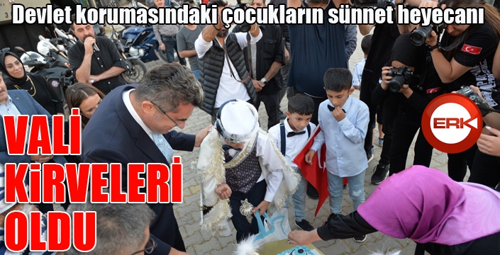 Vali Okay Memiş sünnet olacak çocuklarla birlikte pasta kesimi yaptı, onlara çeşitli hediyeler verdi. Törende sünnet olacak çocuklara gönüllü anneler tarafından kına yakıldı.