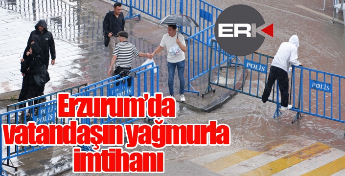 Meteorolojinin Erzurum ve çevresi için verdiği yağış uyarısı, öğlen saatlerinde etkili olmaya başladı. Zaman zaman etkili olan yağış, kent merkezinde yine taşkınların olması sebep oldu. Erzurum en işlek yerlerinden birisi olan Cumhuriyet Caddesi’nde kaldırımdan yolun karşısına geçmek isteyen vatandaşlar zaman zaman ilginç görüntülerin ortaya çıkmasına neden oldu. Bazı vatandaşların su akıntılarına karşı polis bariyerlerini kullanarak geçtiği görüldü.