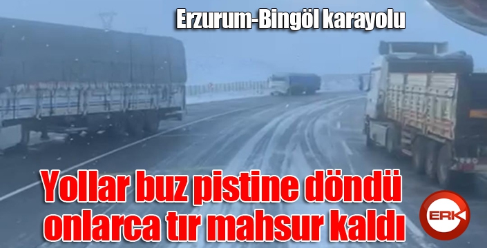 Doğu Anadolu Bölgesi'nde 3 gündür devam eden sağanak yağış zaman zaman yerini kar yağışına bırakıyor. Erzurum-Çat karayoluna yağan kar sonrası soğuk havanın etkisiyle yollar buz pistine döndü. Kış lastikleri olmayan onlarca tır ise yollarda kaldı. Erzurum Büyükşehir Belediyesi ekipleri, iş makinaları ile yollarda tuzlama çalışması gerçekleştirdi.